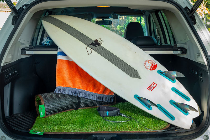 muk mat makes it easy to capture the sand from your surf board and beach gear so it doesn't go all through the car. Once you're home, shake your mat out and voila! The car stays clean.